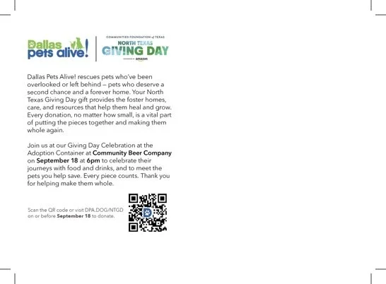 I was tasked with creating promotional assets for DPA!’s North Texas Giving Day campaign. These materials were designed to raise awareness, engage the community, and drive donations toward the organization’s fundraising goal.
